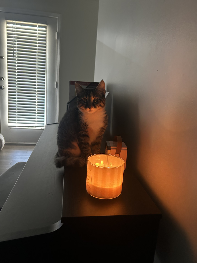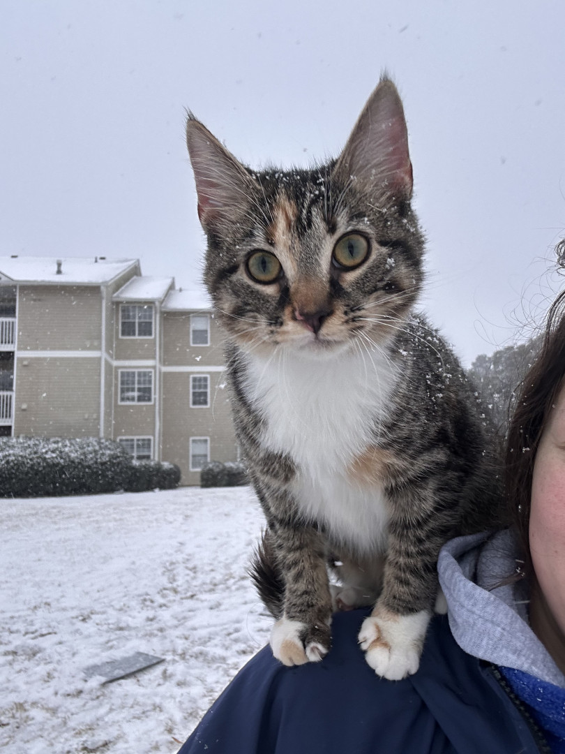 Koda has had a challenging life. She was abandoned by her mother at 2 weeks old and was very sick. My girlfriend and I have raised her and her siblings, which now receive many pets and cuddles. Koda has overcome the challenge of being sick and is now in great health and is always excited to see any human. She is the most loving, intelligent, and adventurous cat that I have met and she strives to make everyone happy with her sweet love!