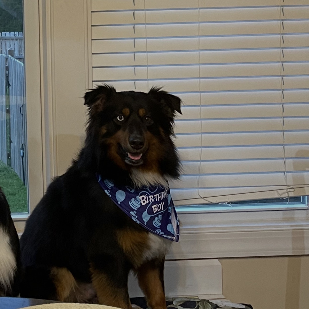 Koda is an Australian Shepherd! He is the best big brother to sister, Skye and protector of Mom.
