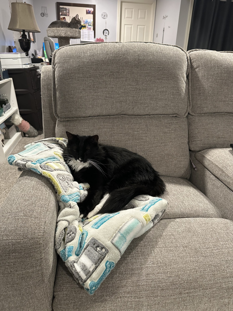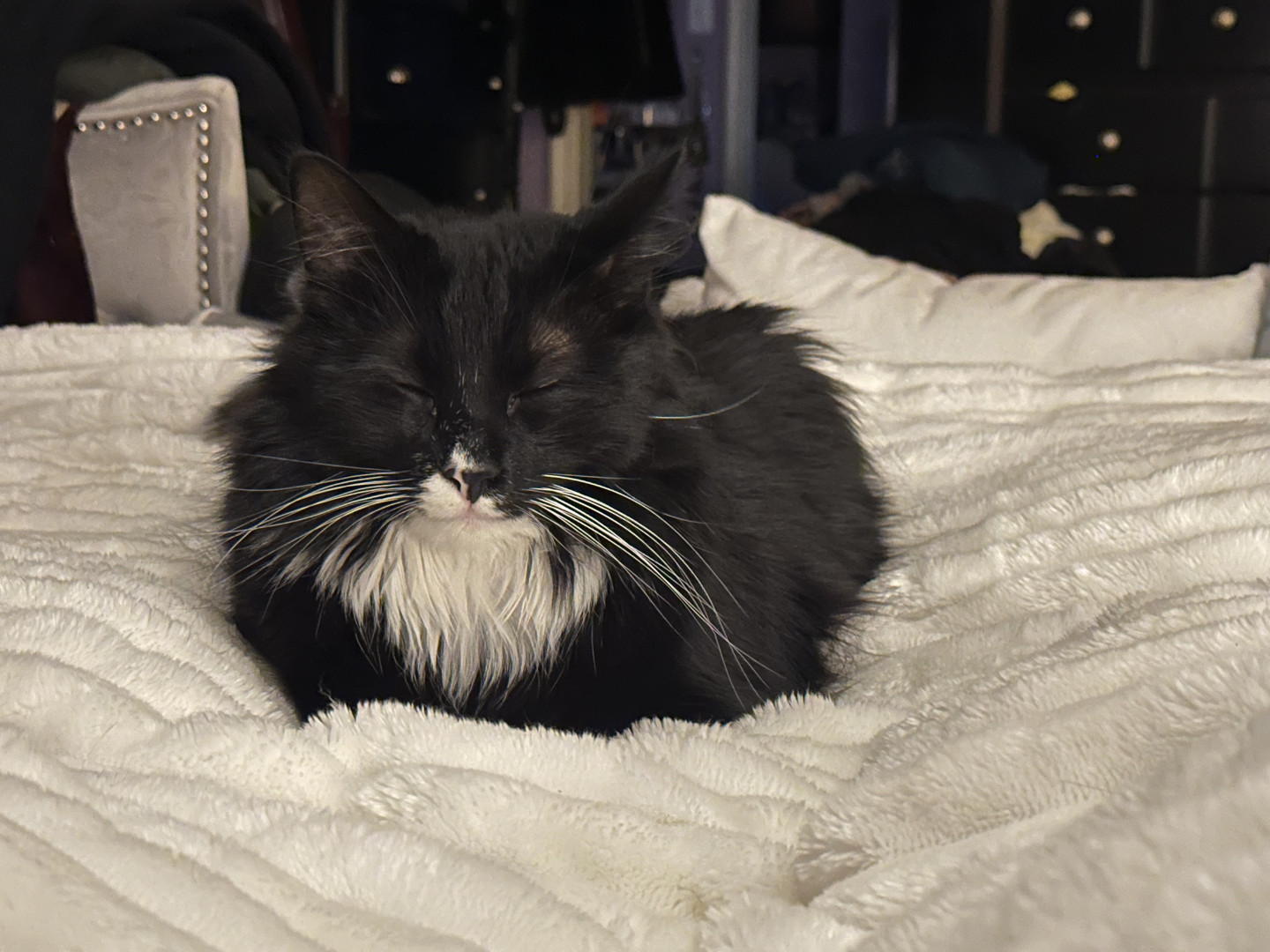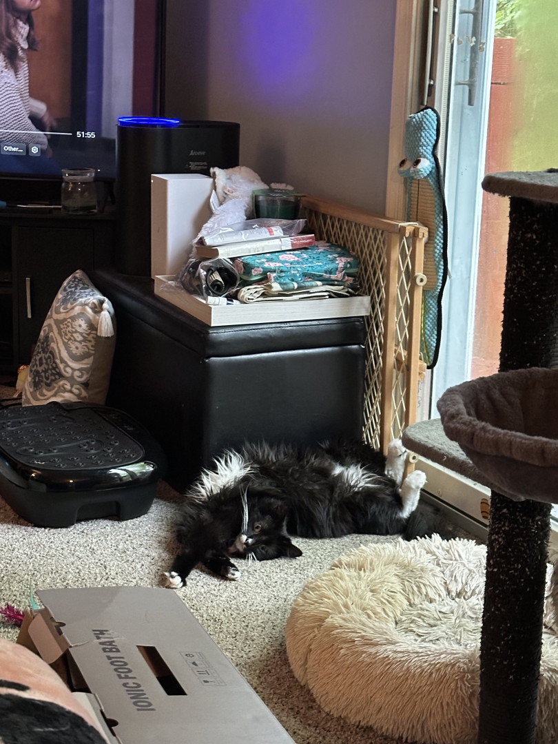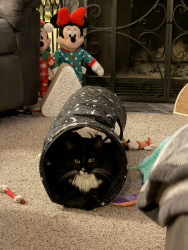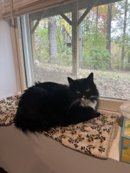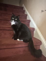 Koda is a lovable inquisitive beautiful tuxedo with a fluffy tail. He loves to be with his people and getting lots of treats.