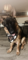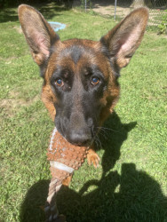 Koda was born with his retinas not developed so he is partially blind !! He is super smart and can still play ball but he goes by his senses more then anything