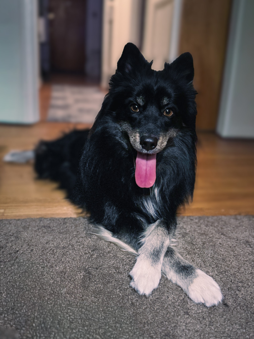 Because Kodi isn't just a part of my family, he impacts everyone's life he comes in contact with by brightening their day and making friends everywhere he goes, plus his eyes make it hard to say no. Some of the people he interacts with have called him therapy. You take all the goofiness, escape artist, intelligence of the Husky and mix it with the sass of a Pomeranian and you gain this floof of joy