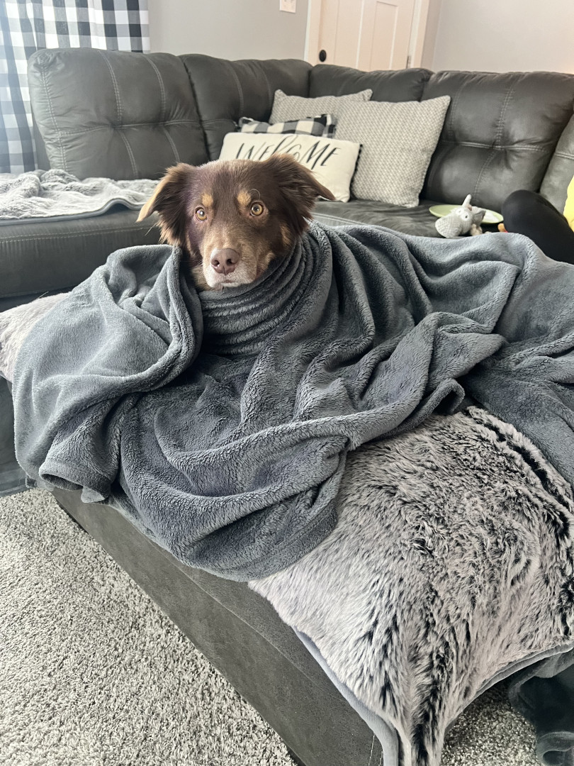 Receive Text UpdatesKoe loves bacon treats and his favorite toy is probably his blanket or his cow.