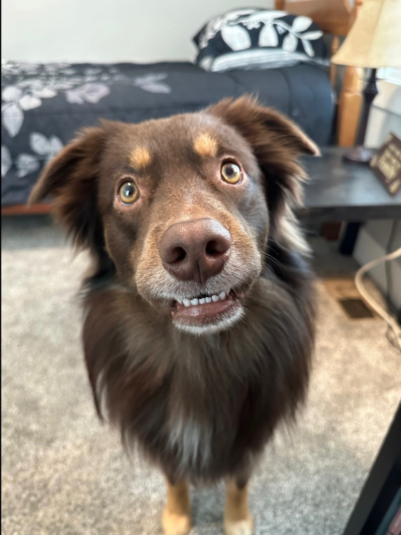 Koe the Aussie: smart, witty, hilarious, and endlessly loving — a loyal shadow with a heart as big as his energy.