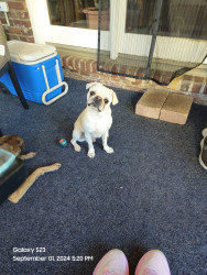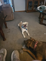 He was raised with my plott/pit bull terrior, and extremely muscular with no fat. People that see him say they've never seen a pug like
