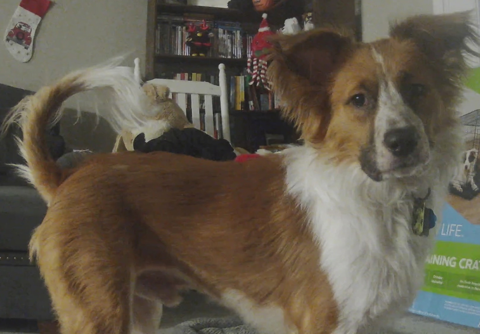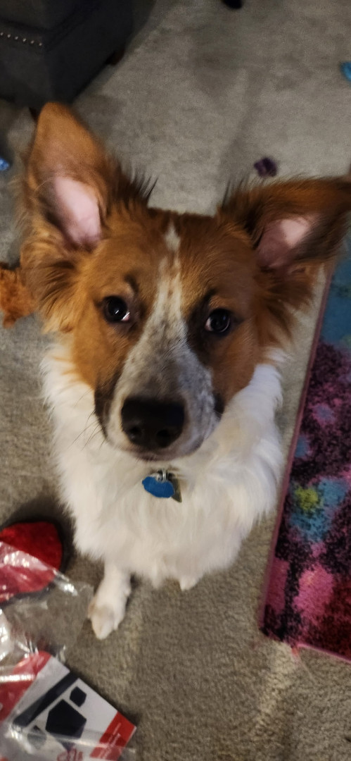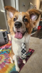 Kratos's most unique quality is his ears. Some days they love to point straight up and other days they are droopy. Some days one is up while the other drops. Kratos loves to tilt his head especially when it comes to any new sounds or music. He is also afraid of random sounds, he jumps at everything including his own shadow sometimes. Kratos is such a sweetheart and loves to play with cats. For a puppy he is very loving and smart. He can also catch balls very well.