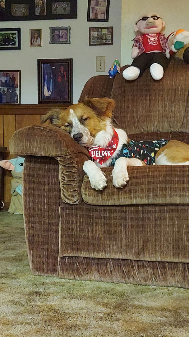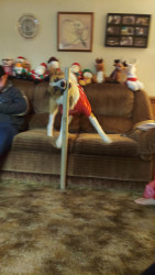 Kratos should be America's pet because he is such a unique looking dog and everyone says he is the cutest whenever they see him. He is also the sweetest puppy and loves to keep track of all the humans in the house to make sure no one is missing. If you every need a good laugh or cuddle he is there to assist.