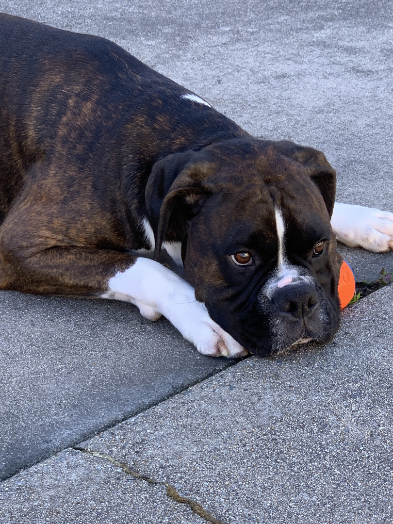 Ball! He loves a good ball but hopefully you got your running shoes on. He’s in it for the chase! Go-to treat woulda be banana! He can be in a dead sleep and wake up for a one!