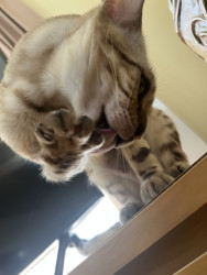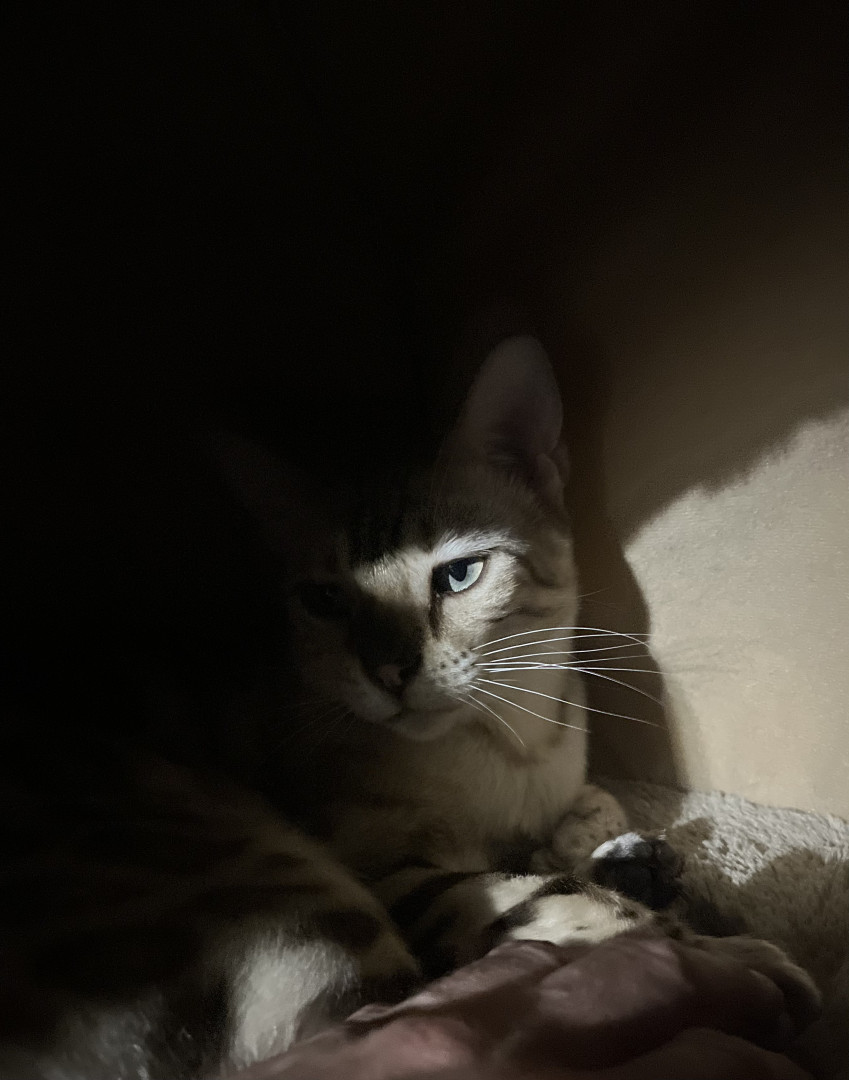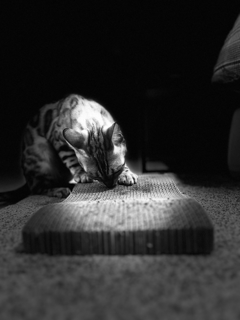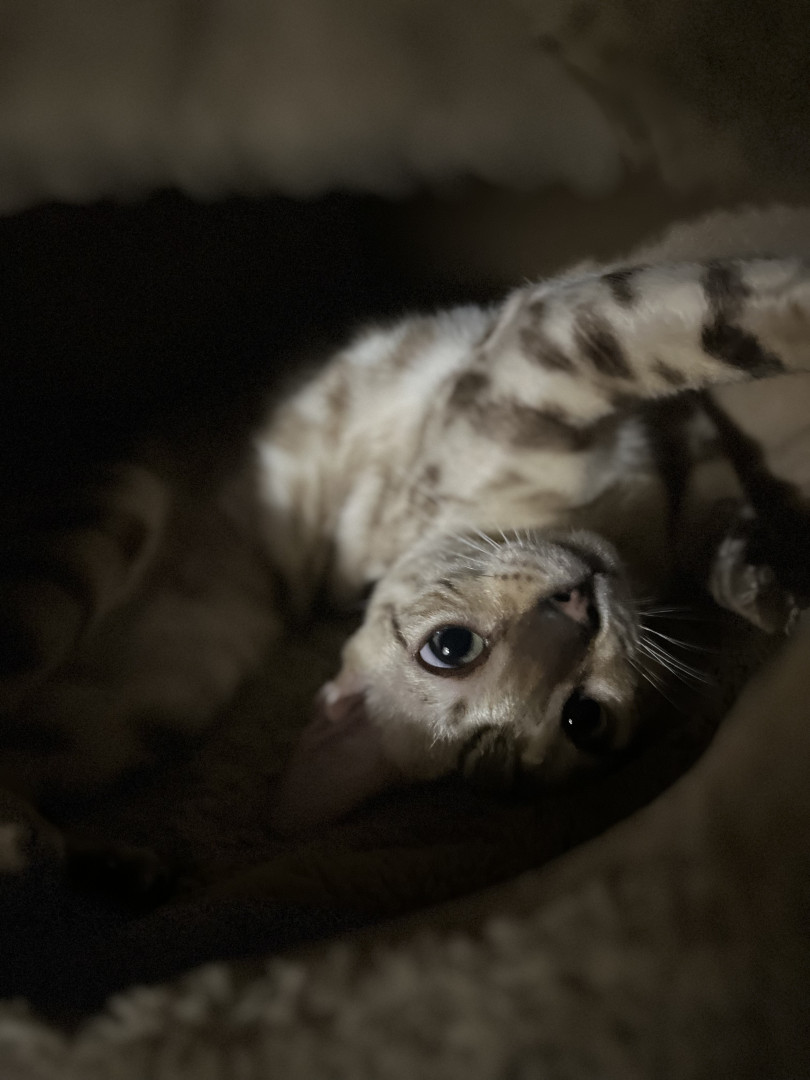 Krimpet, is more cuddly than a normal Bengal cat. She’ll sneak into the smallest crevice so long as we make contact, one way or another.