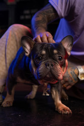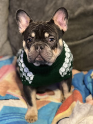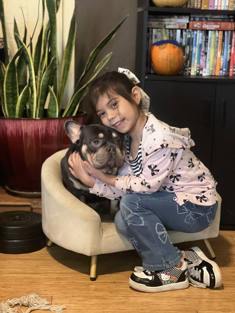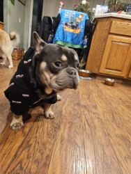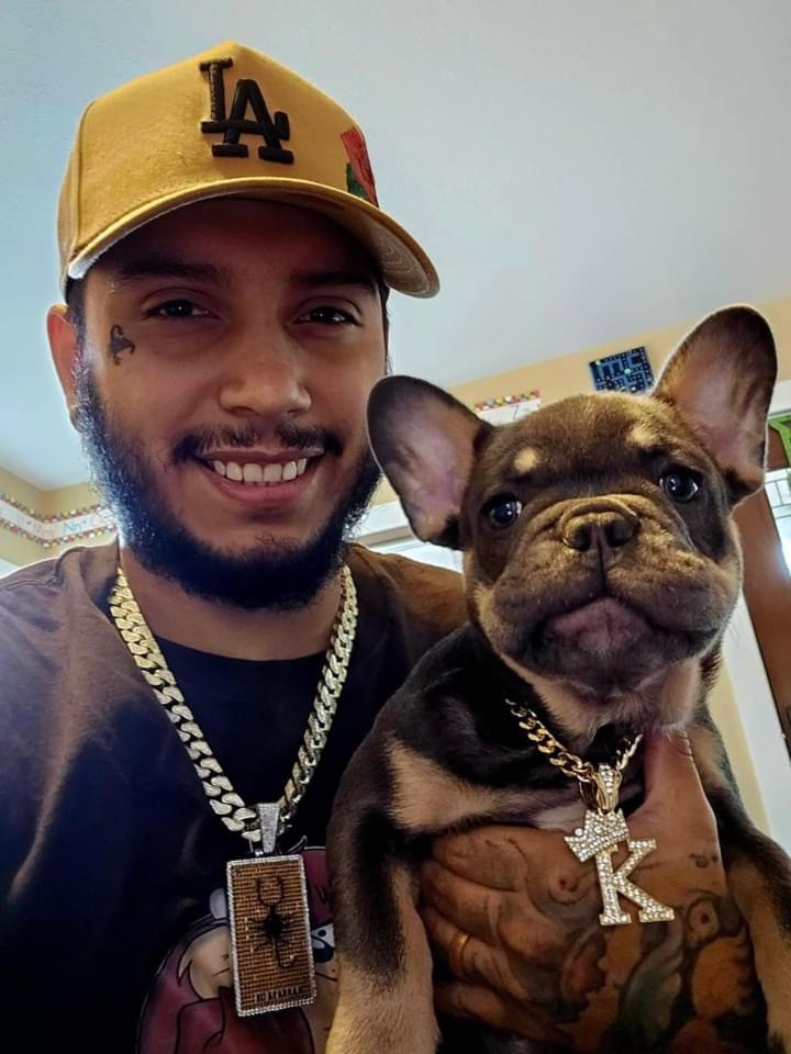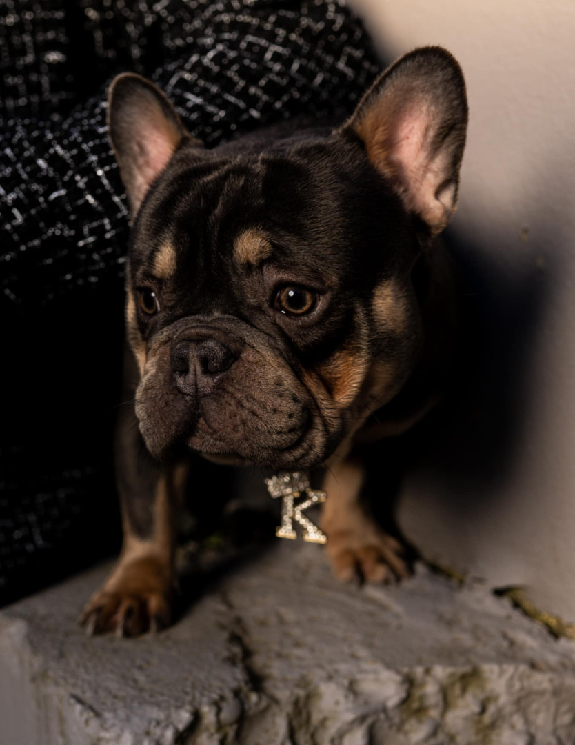 Meet Kuma: a 2-year-old French Bulldog who wiggles when excited, kisses boots, and rocks a gold chain like a boss.