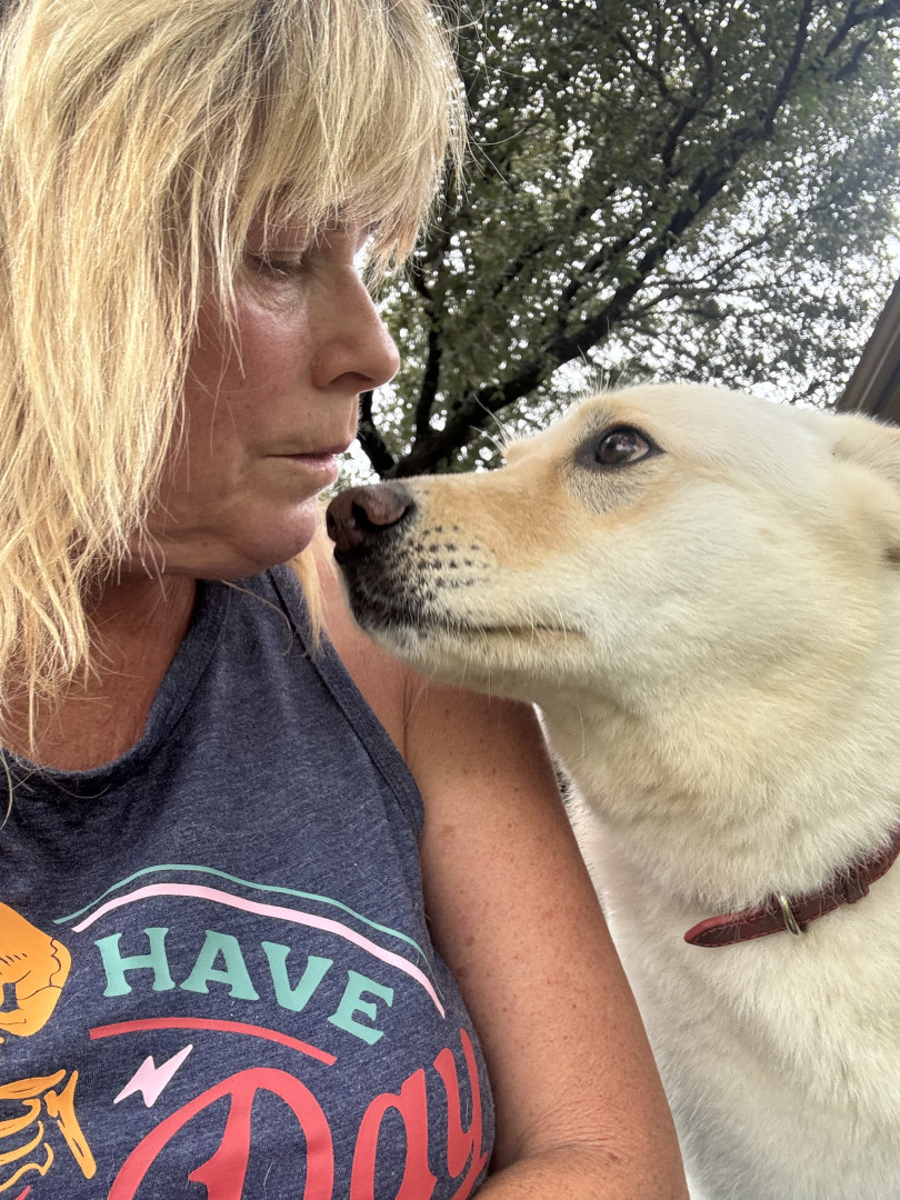 Because she is my heart . She has been through so much .All I know is she walked through our garage into her home fell down from exhaustion. We know she had been roaming our neighborhood for at least six months prior . From February to September in texas heat . Some Off Leash training was called for. Now she’s the most amazing loving dog we’ve ever owned.