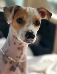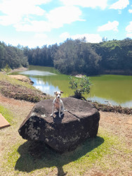 He has a great personality. He's well-trained, and he trots like a show dog And a lot of people think he's so cute and gets along with all the dogs at the dog park , big or small