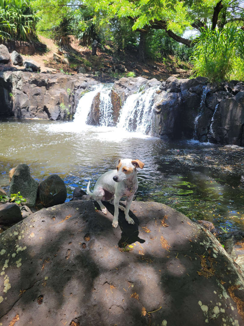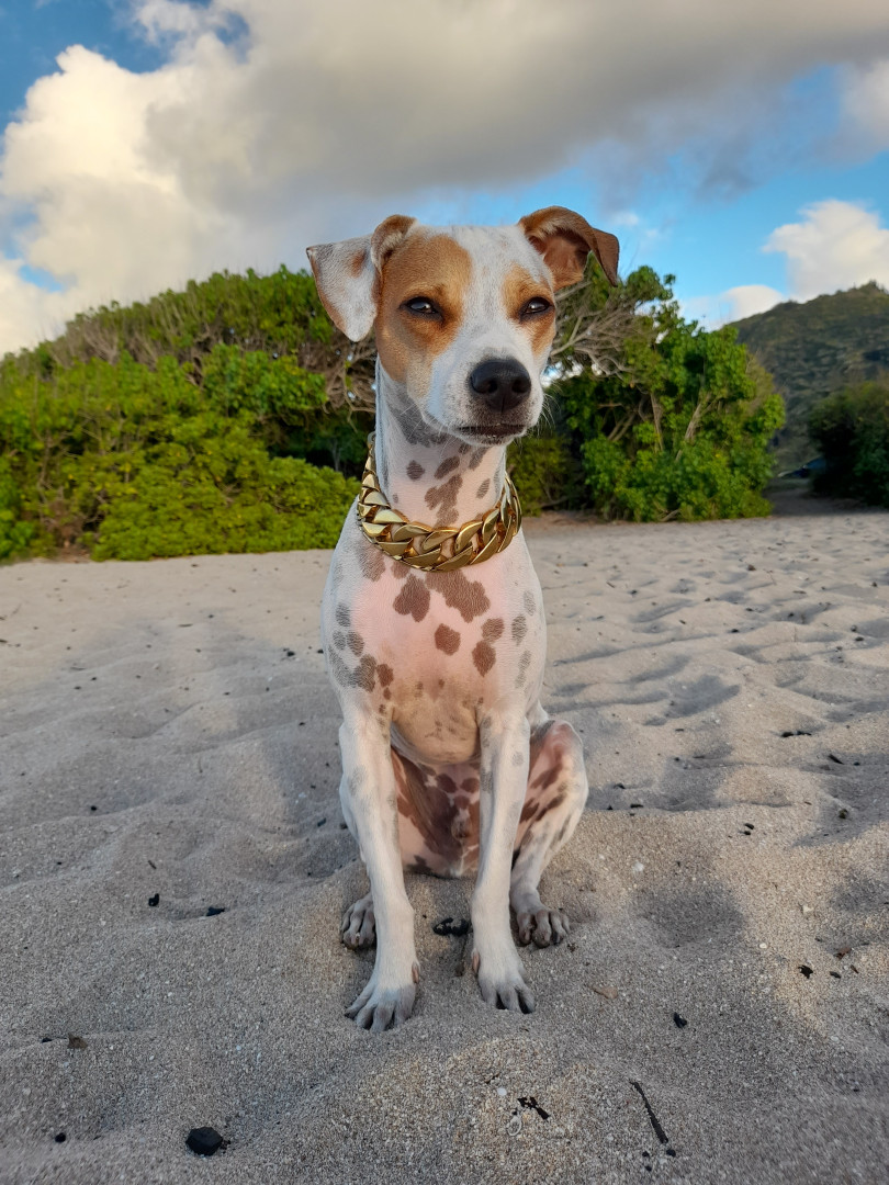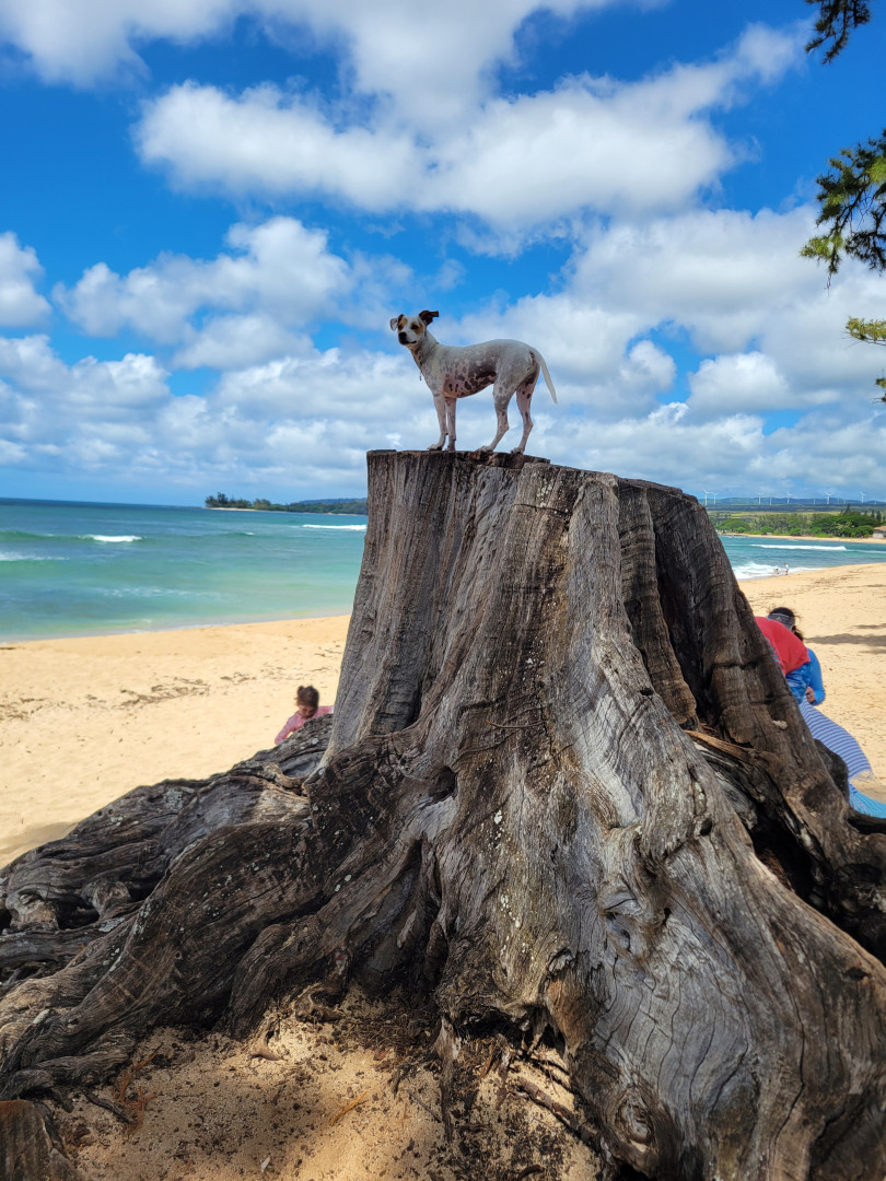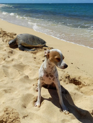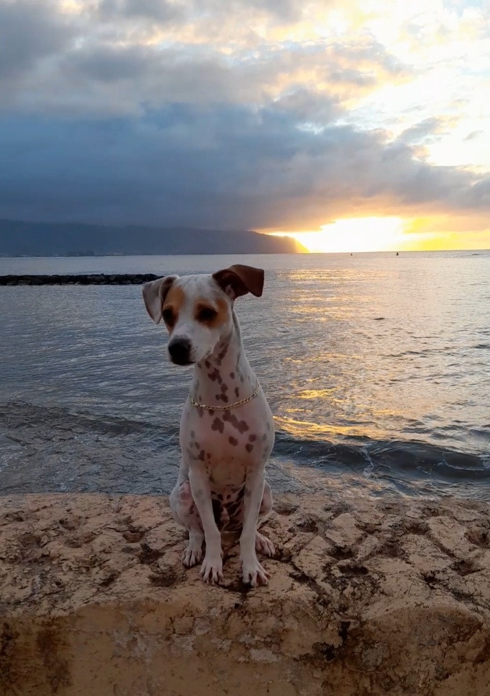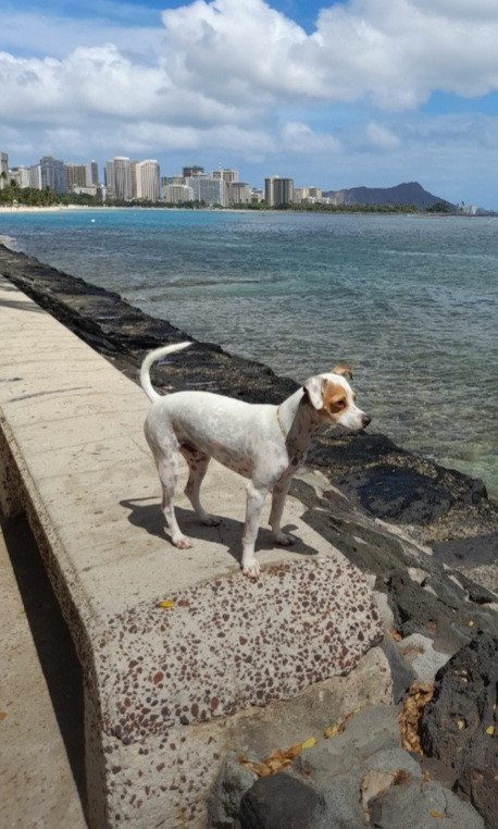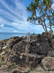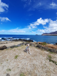 He has that quality in him , that makes a lot of people want to pet him and we live in Hawaii so of course he loves the beaches and hiking