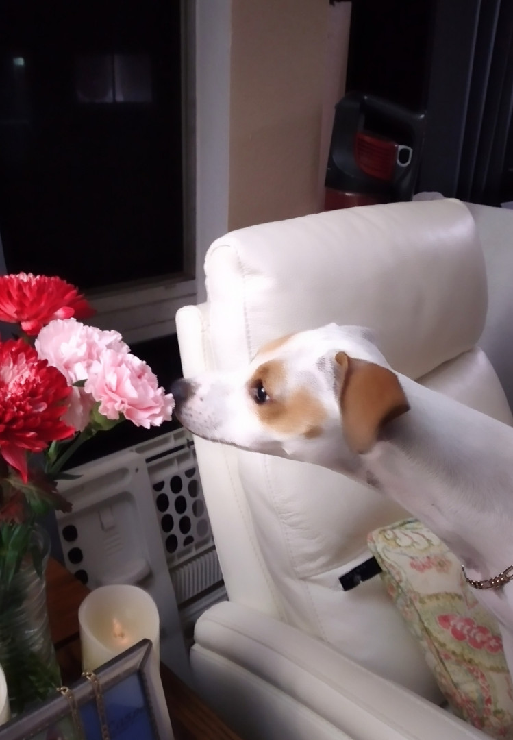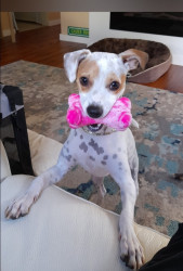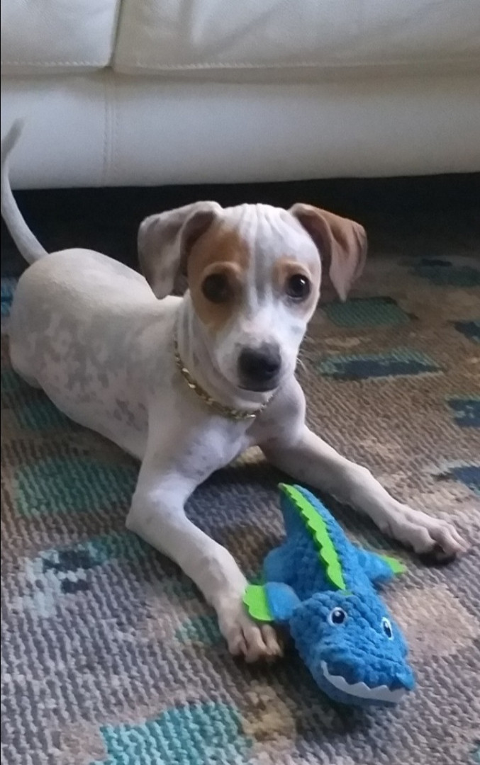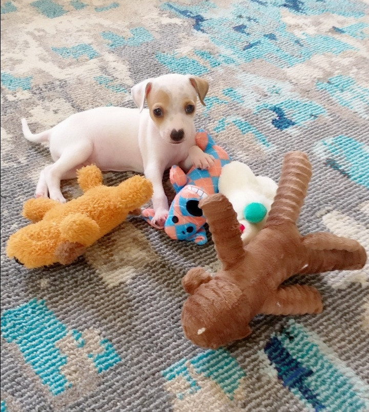 He loves his lamb chop stuffed animal and loves his thin cut chicken jerky chips
