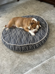 Receive Text UpdatesKyra enjoys her X-Large ham bone. She likes big squishy toys