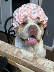 Kyra is a fun loving gentle family member that has been with the family since she was a puppy. She loves sunbathing, she enjoys her baths.