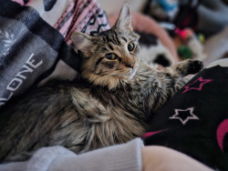 She is the sweetest girl and loves to cuddle with me every chance she gets. She is also an avid bug hunter.