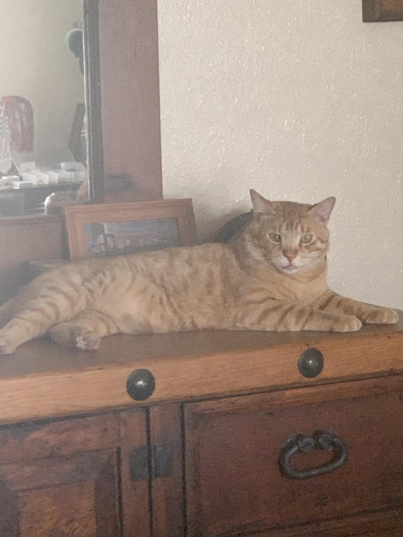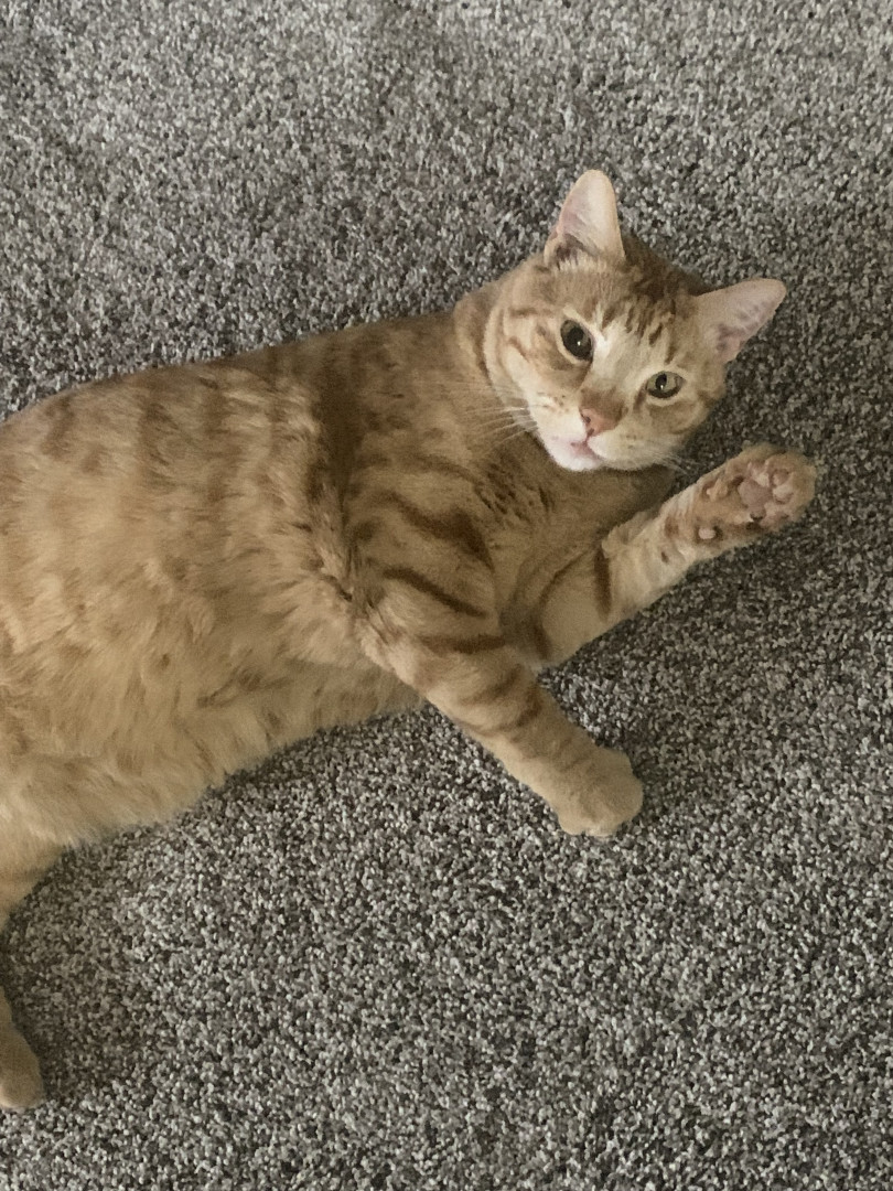 He was a rescue kitten barely had his eyes opened and full of fleas. Our border collie had him penned between the water trough. He grown into a very handsome cat.