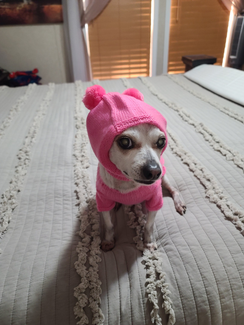 Lacey is almost 15 years old. She has had a very good and fulfilling life. Me and her daddy's spoiled her rotten. She is going blind and she has diabetes but mommy takes care of her very good and her diabetes is under control. It can be very challenging sometimes due to the fact that I have to watch her struggle sometimes to get to the bathroom because she can't see and sometimes it takes her a while to get down from the bed. She's fallin a few times So now I just try to take her everywhere.