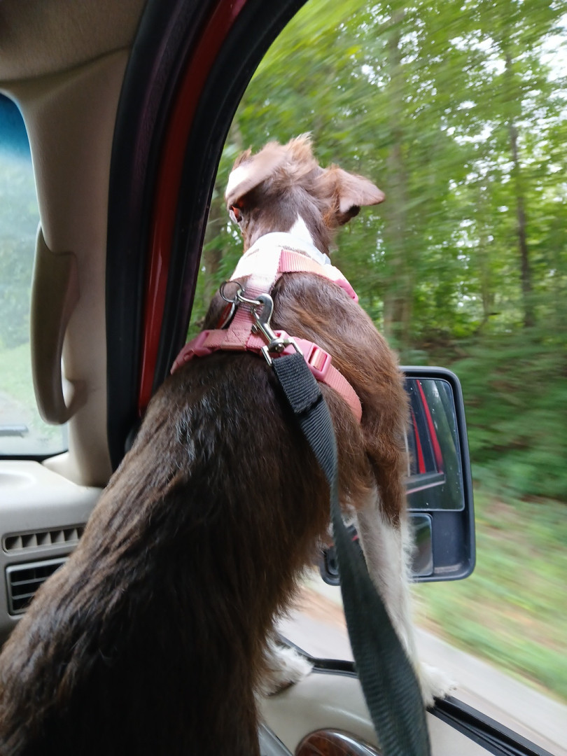 She is a happy silly amazing pup loves swimming rafting sailing car rides and being loved and chewing everything!!!