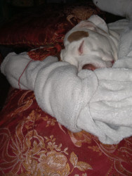 Bc she's 11 and a pit bull she would never hurt a child .Shed never hurt anyone unless we were in danger . I'm her step mommy and I'm sick SHE knows when I'm in agony and she ll lick and her grandmother is 85 So we're all older and she deserves a this .Thank you e then lay so close to me .I love her and her Daddy well he's just head over hills he loves his ladybug .