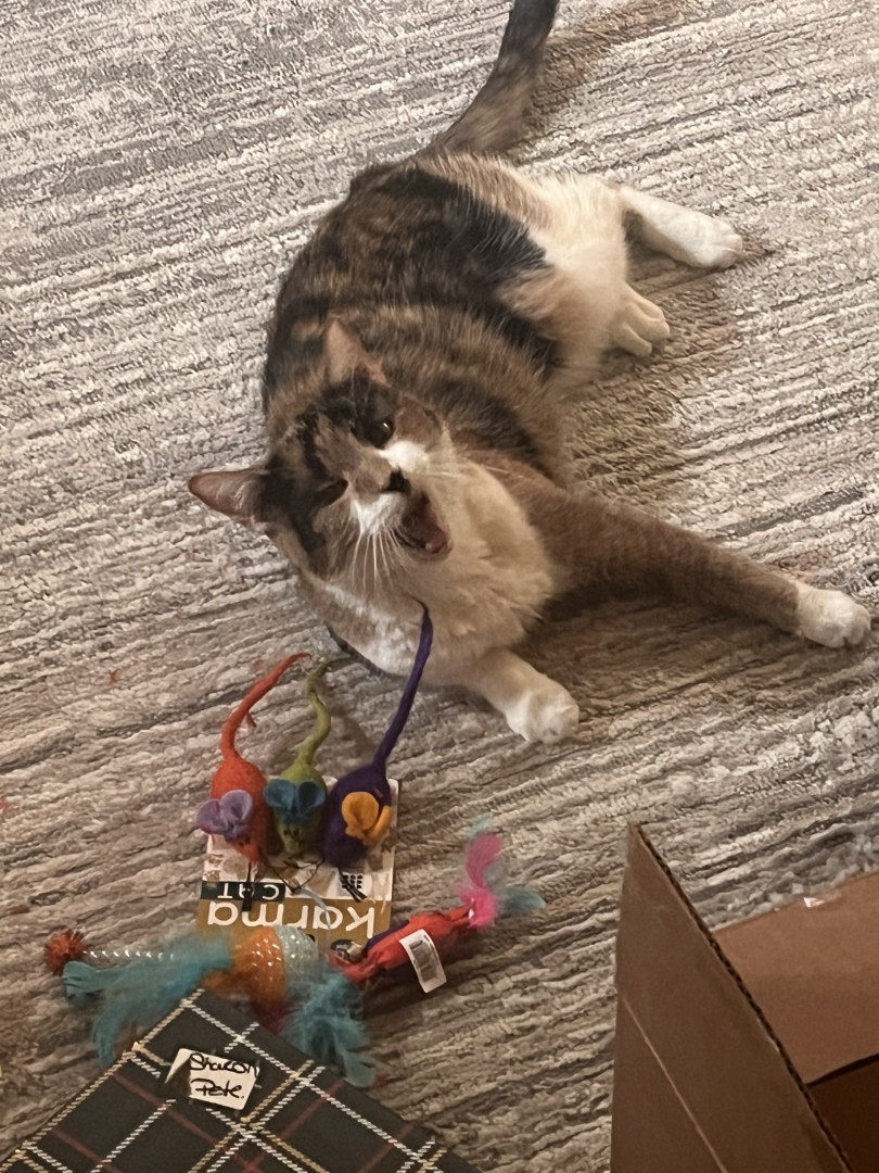 Learn MoreLadyBugs favorite toy is her mouse and her favorite treats are bonkers!! She waits at the counter for her treats everyday and loves to play with her toys!!
