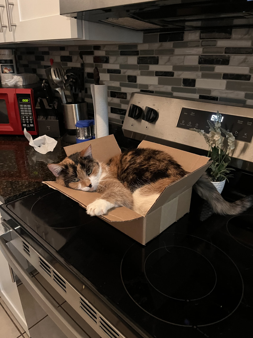 Ladybug is the runt of the litter .. she is a rescue and has been in our family for 12 years!! She is Miss kitten forever!!