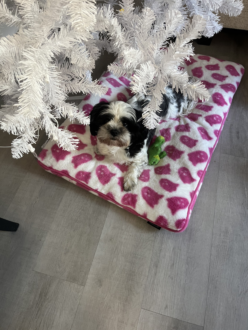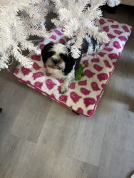 Learn MoreLainee has a Lil squeaky frog that she loves. As soon as she hears Dad and mom get home she runs as fast as she can to find it and stands at the door waiting on me with it wanting me to chase her. She loves to zoom around the yard with her big sissy. She answers yes by swiping her paw across her face when you ask if she is hungry or has to pottie. Her go to treats are 4Health freeze dried salmon treats.