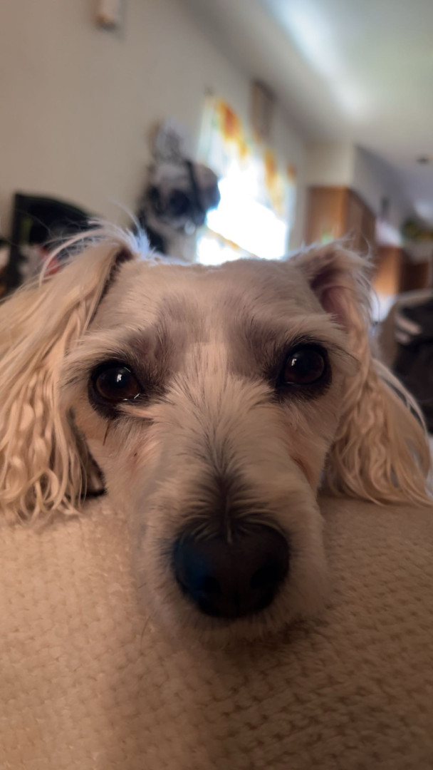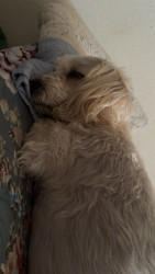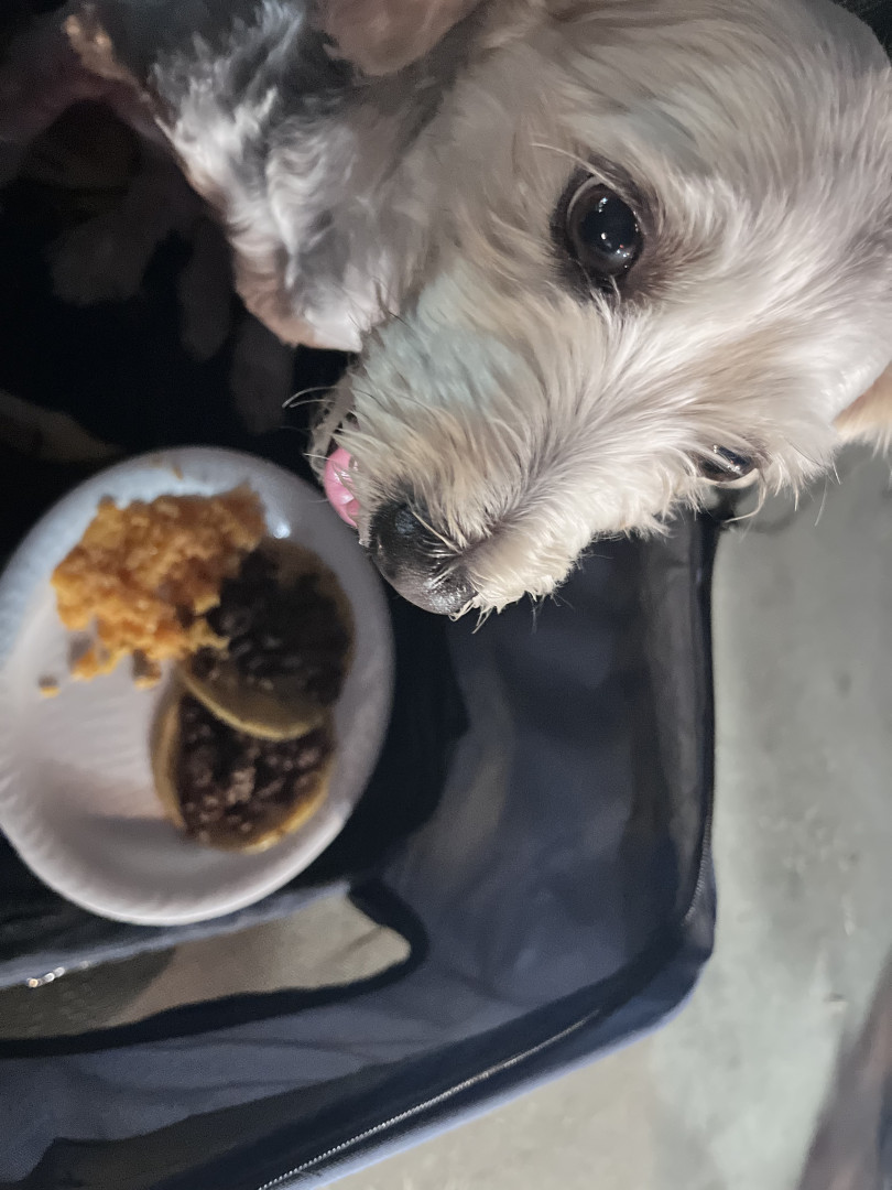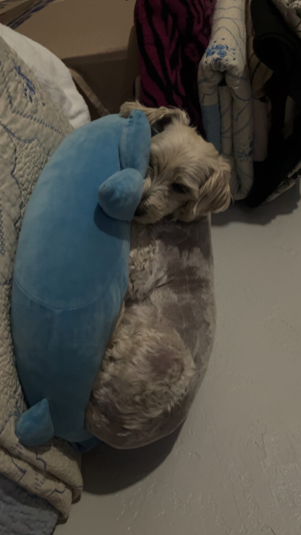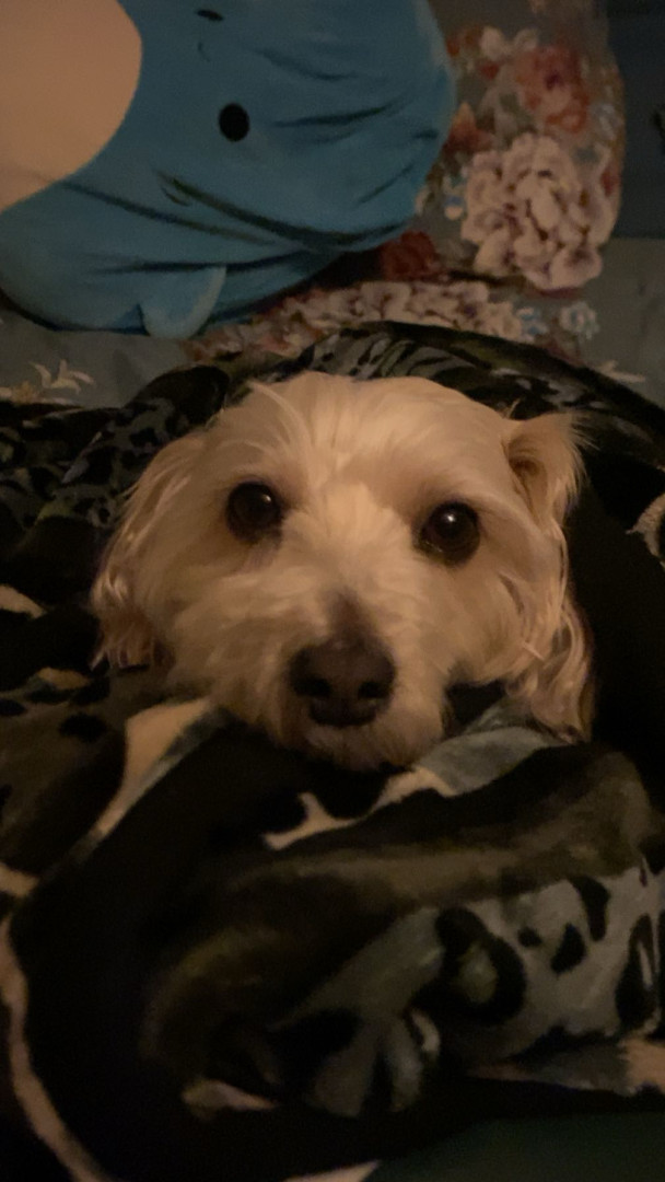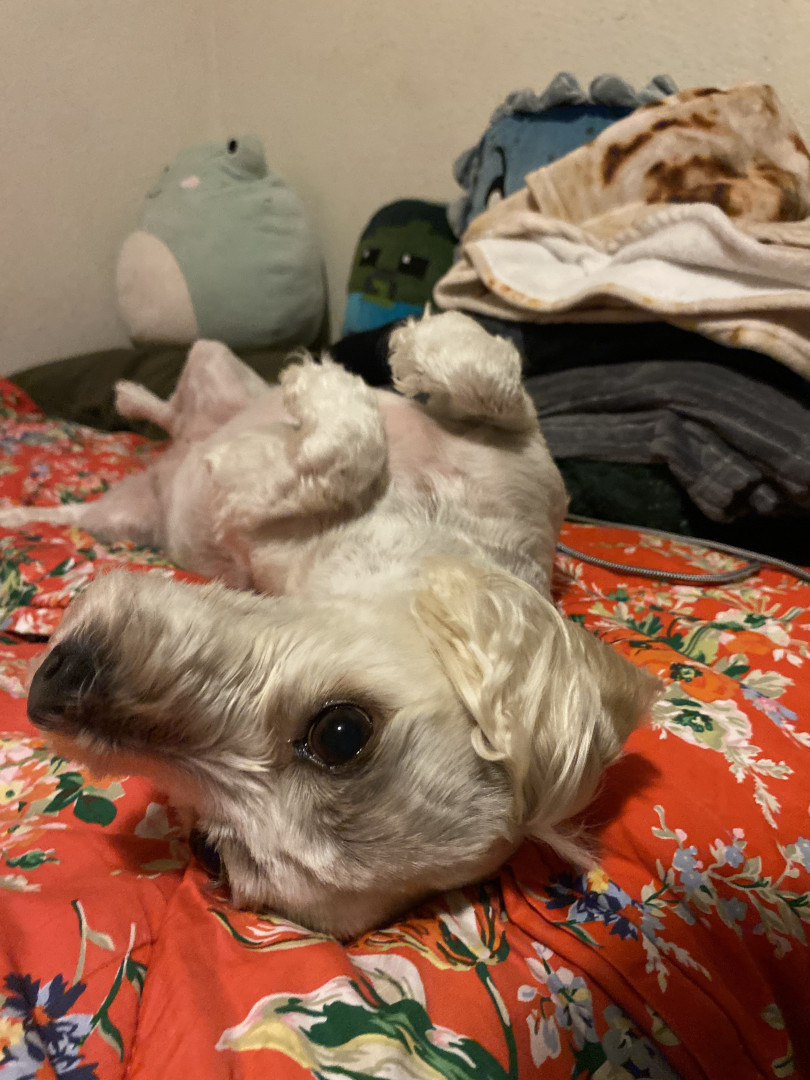 She is a female mutt she loves to eat and really loves sleeping with the family and she also enjoys being with us and going on walks.