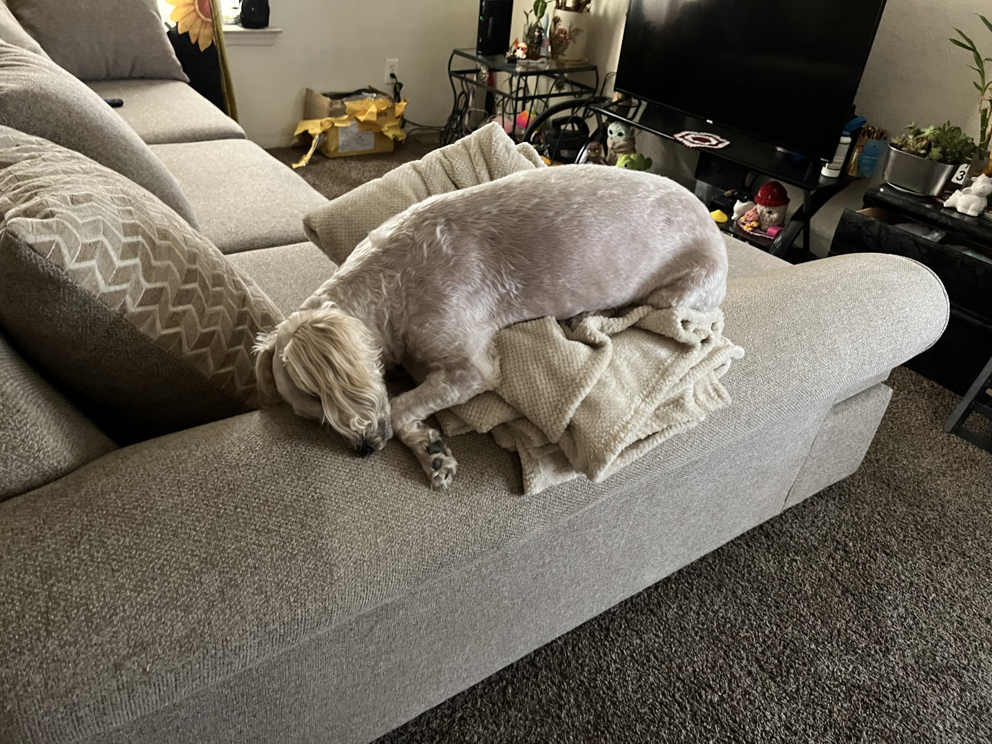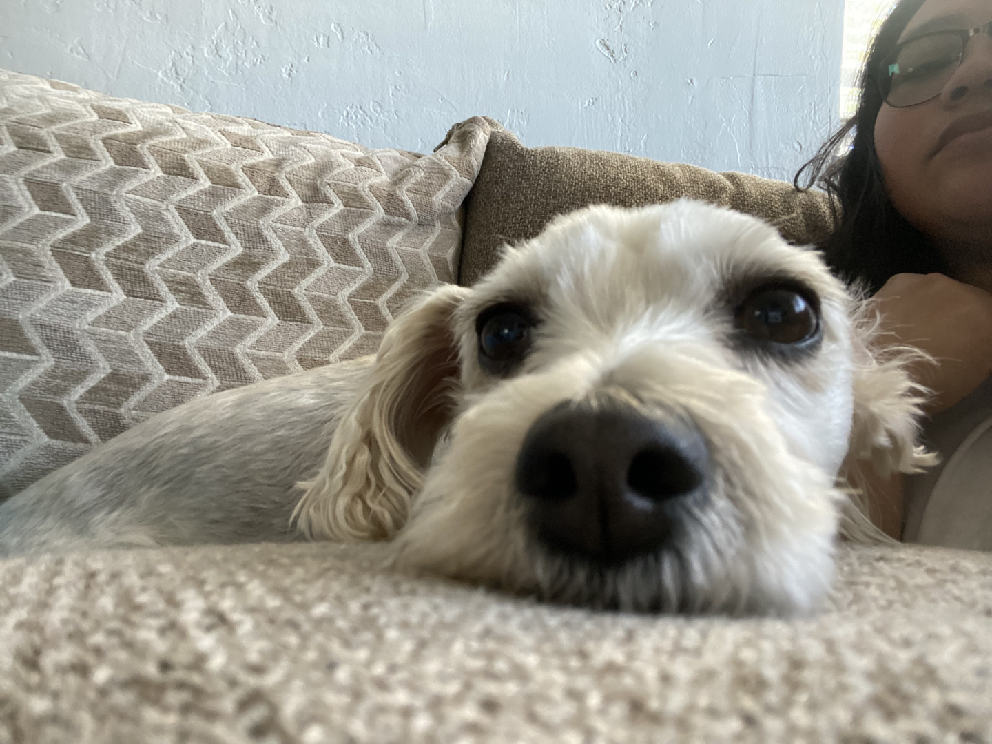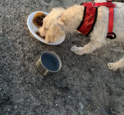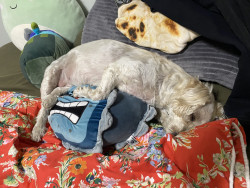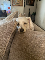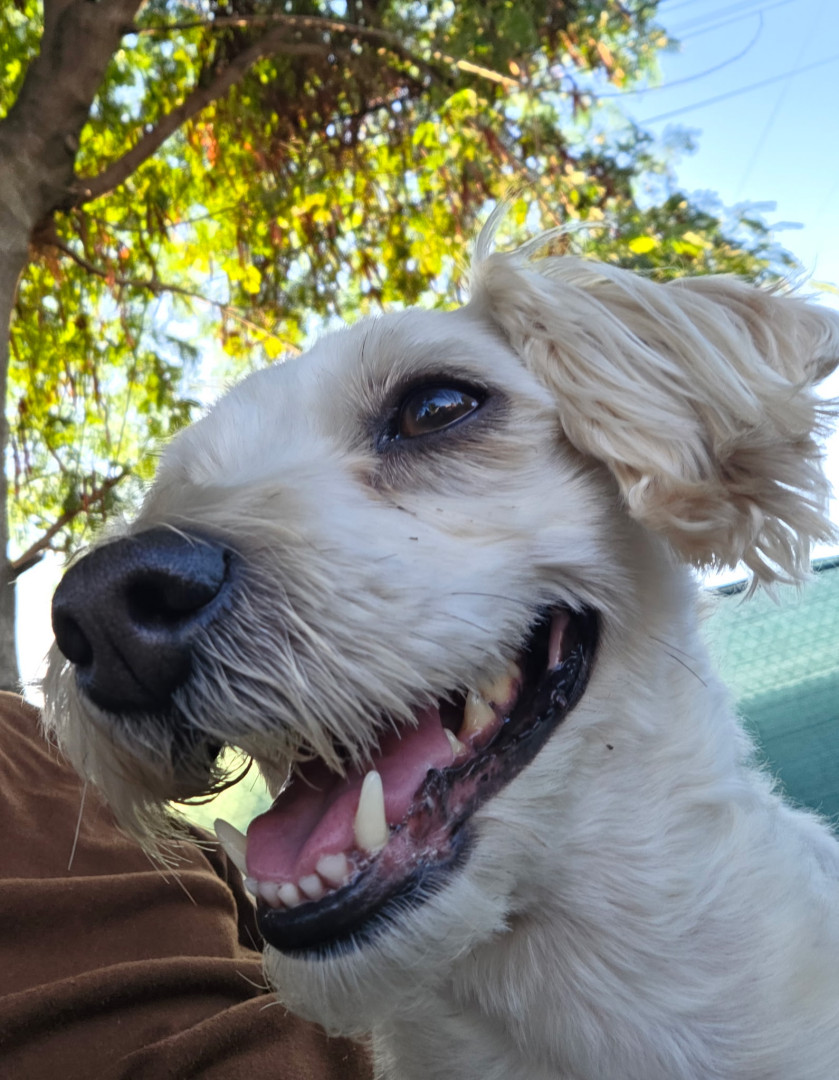 She is a female mutt she loves to eat and really loves sleeping with the family and she also enjoys being with us and going on walks.