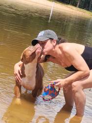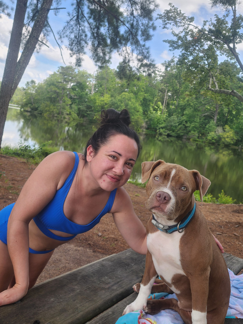 I think because she's a pit bull, and they usually get such a bad reputation, it would be great to show America a different side of them. Lala has been beside me through the loss of my dad, my struggle with and recovery from addiction, and marrying the love of my life. No matter where she had to go, or stay, or anything, she was always happy and loving on me and any human or animal she sees. She is truly my best friend, and I've never said that about any animal I've had before. She's my soulmate