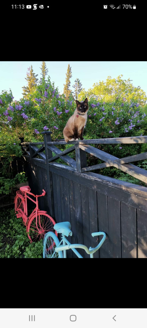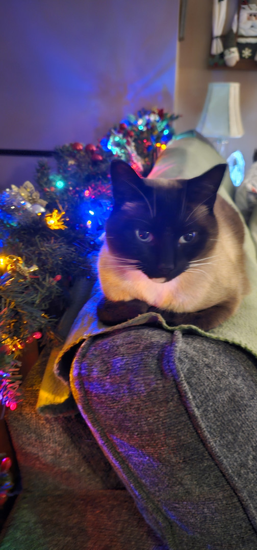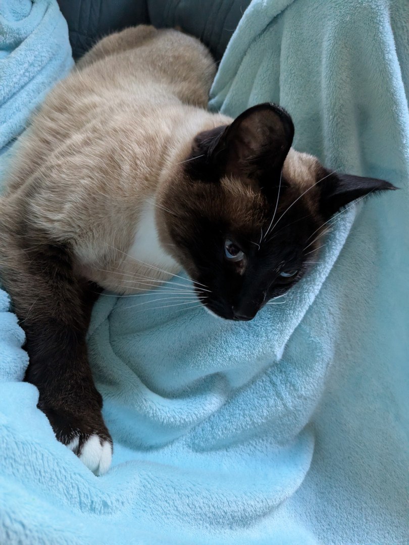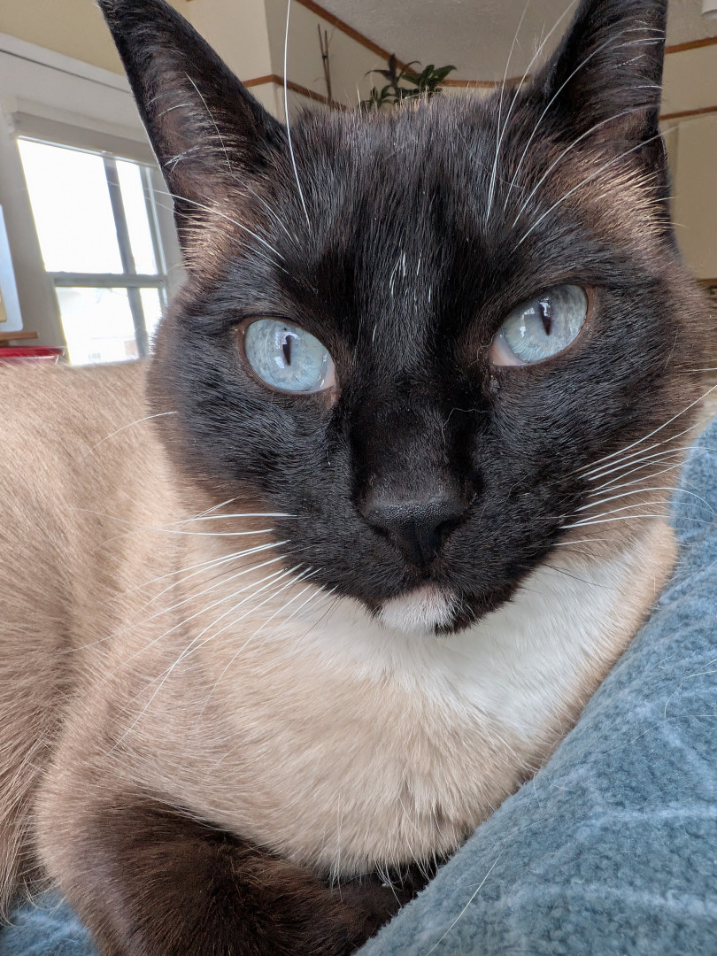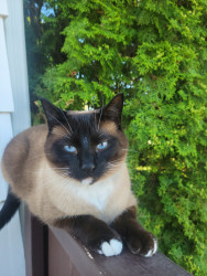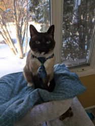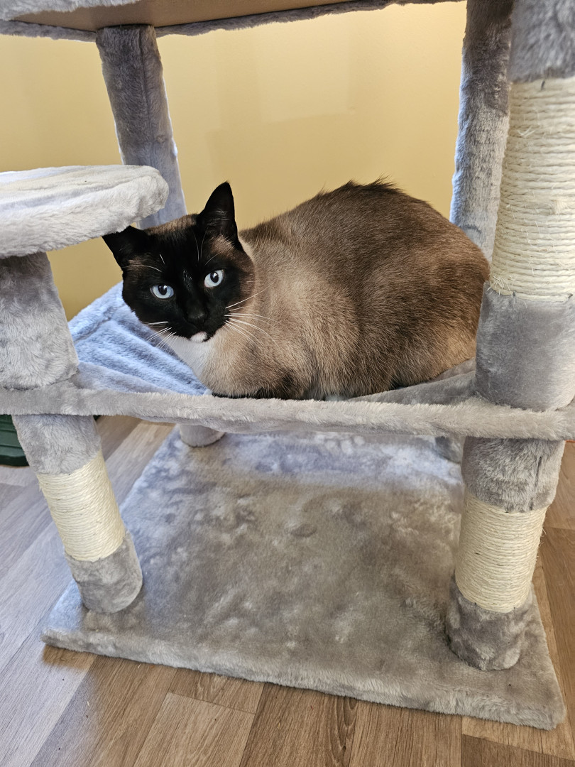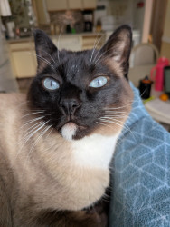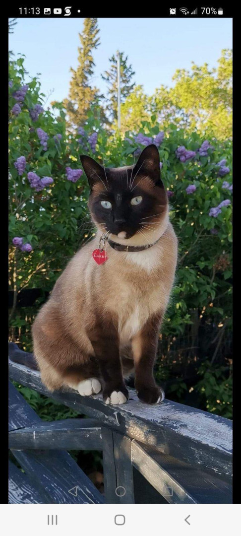 Larry is a Siamese mix. He's nine years old His personality is out there, I'm 🤣thinking he could be a comedian!