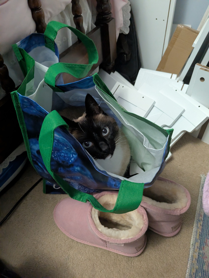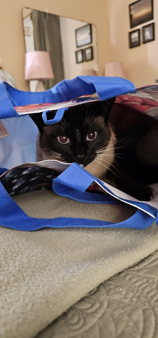 Learn MoreLarry can't resist shopping bags, clean sheets to go under and play in. His toy stick feather ball. His favorite game is tracking the prisms from the window prism.🤣 He loves his tooth brush and temptation treats..thinking he should have every time he's in the kitchen.
