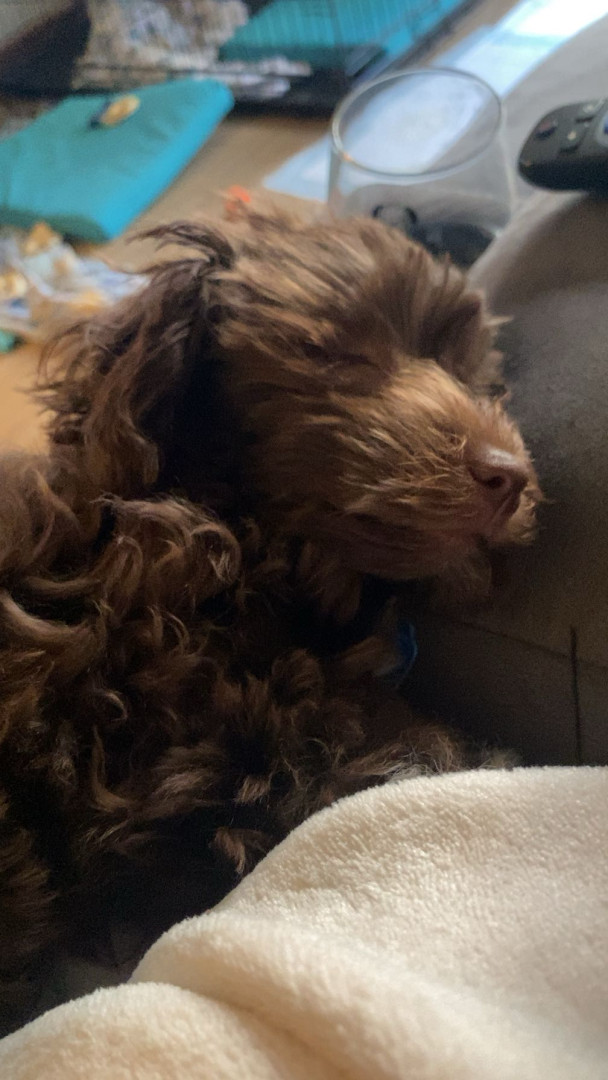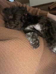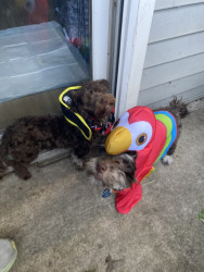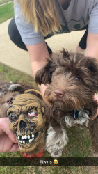 Latte loves to chew on her bones, protects them with her life from her brother, Mocha. And she loves her peanut butter treats, will always be a good girl and sit for some peanut butter.
