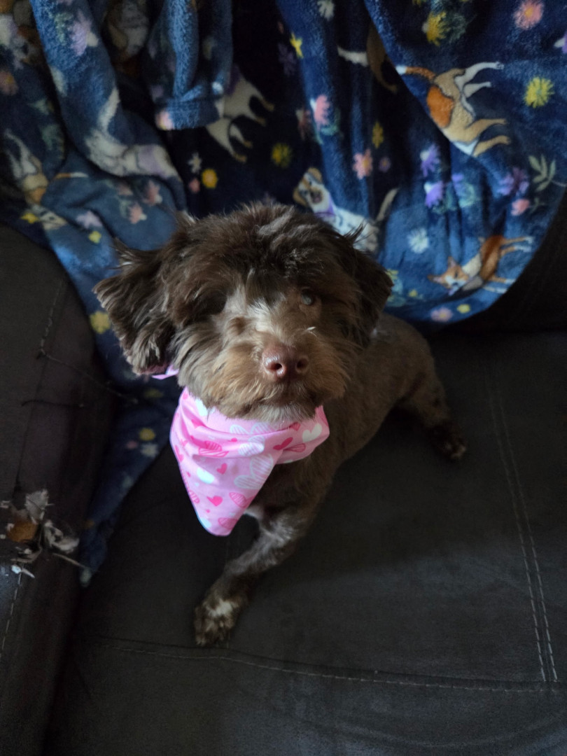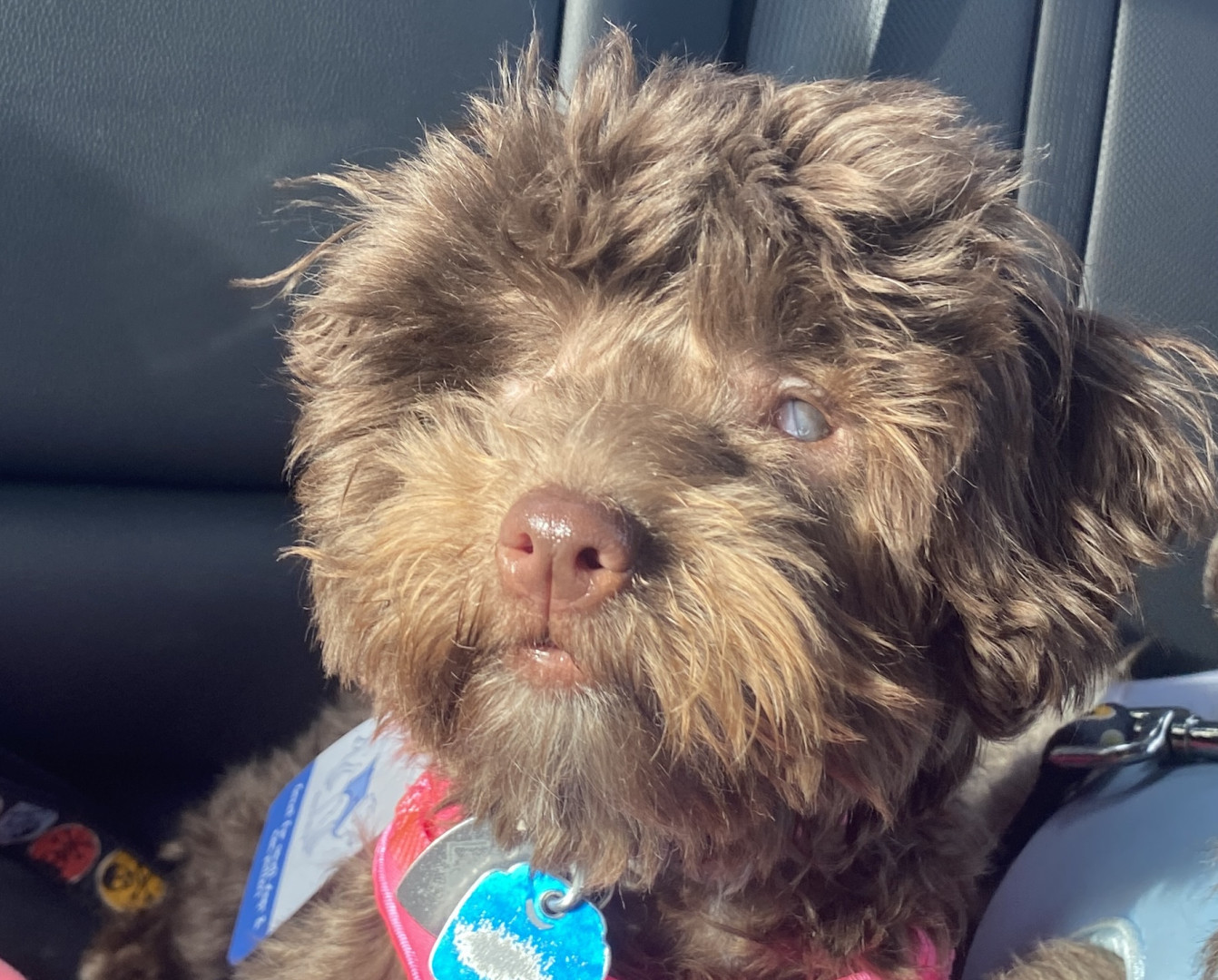 Latte is 8month havanese puppy. She was born blind but you would never know. She is always excited to meet everyone and loves them.