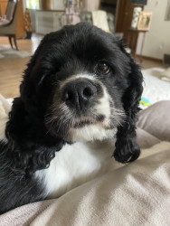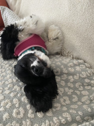 Velcro baby! Sweet and sassy. Loves everyone and anything to chew. So happy to rescue her.