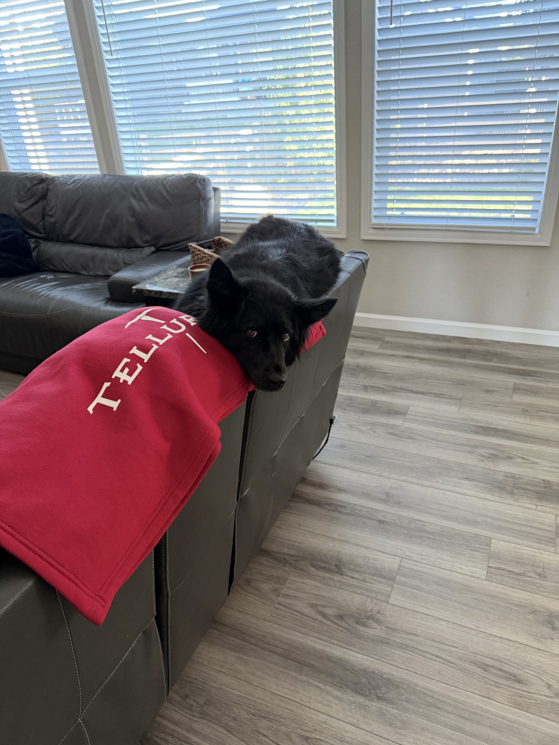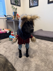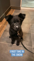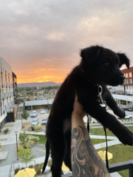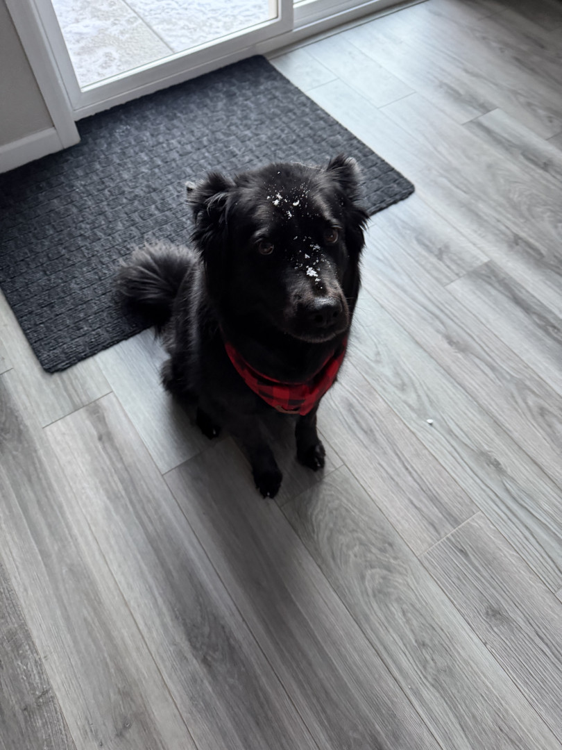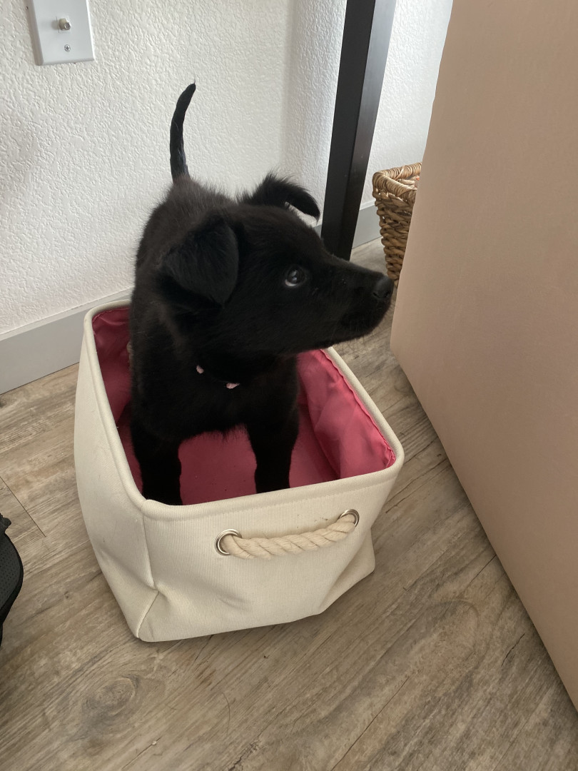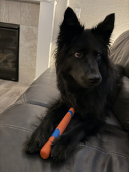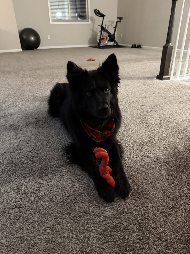 Layla is fully black- even her tongue! She is a mix, but the DNA results say she is a Siberian Husky, Chow Chow, American Pit Bull Terrier, Labrador Retriever mix. We spend a lot of time outdoors in Colorado - at dog parks, on hikes, camping, and walking in our neighborhood. We always get stopped by people asking what breed she is because she is so unique!