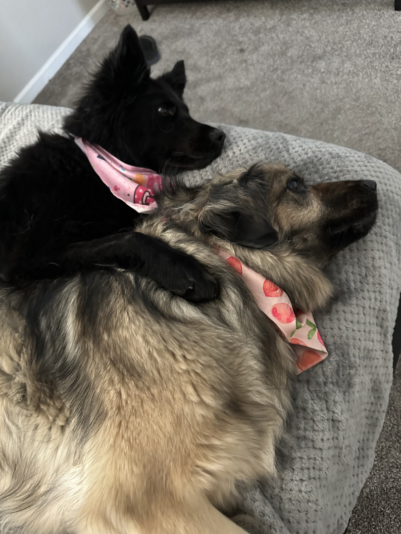 Layla is the best! She loves other people and dogs. She sometimes thinks she is a cat - laying on top of the back of the couch, staring out the window at squirrels and bunnies. Her ears stick straight up, but when she’s excited her ears pin down to her head and she shakes her whole body 😂 She had a rough start when I rescued her; she had fleas, mites, and worms. She was extremely shy and timid at first, but quickly warmed up to her big sister Mila and I. She is perfectly sweet and spunky.
