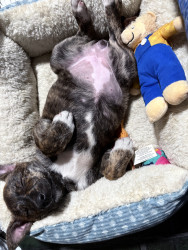 She’s a calm/ crazy lovable girl she loves all the attention and when doesn’t get it she barks at you so you can pet her and she lays down