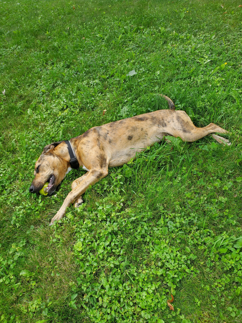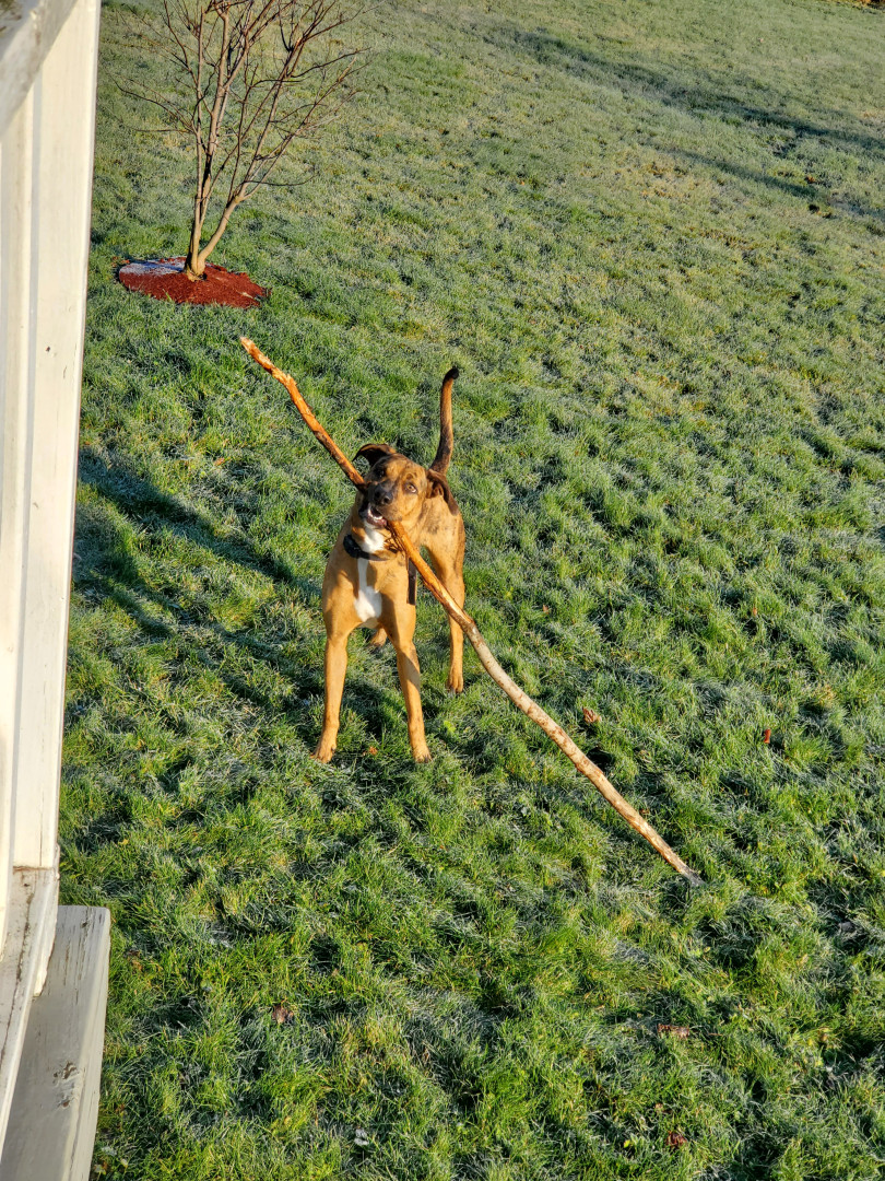 Leia had been returned to the shelter three times due to her high energy when we found her! We are so happy to be able tp give her a home where she can use up her endless energy. She's so patient with our children, and is so friendly with every person she meets!