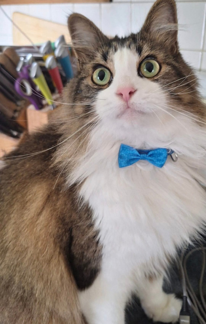 Lennon.. I foster kittens and he was a foster fail. He's part Maine Coon. Loves to Loaf around in the window and stare outside all day.