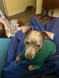 Lenny is half chihuahua/mini pinscher. He is a sweet boy who loves to watch TV and sleep under the covers.