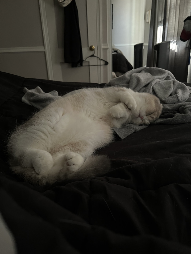 Leo is a 8 month old Scottish fold. He is very curious especially with water and straws. He loves laying on his back for belly rubs.