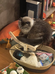 He’s very outgoing and social, loves to play with cats, humans and dogs alike. He’s a loving boy and deserves more attention, any amount we give him is not enough! 😆
