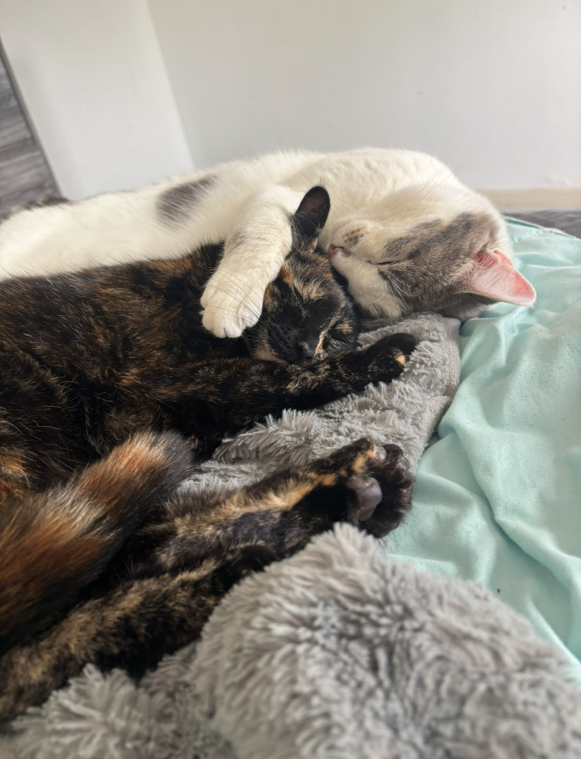 Leo and Hazel are one of a kind. They have the sass but love all the snuggles. Leo (the gray and white) is all about the love and attention!