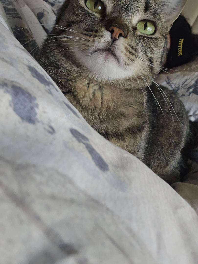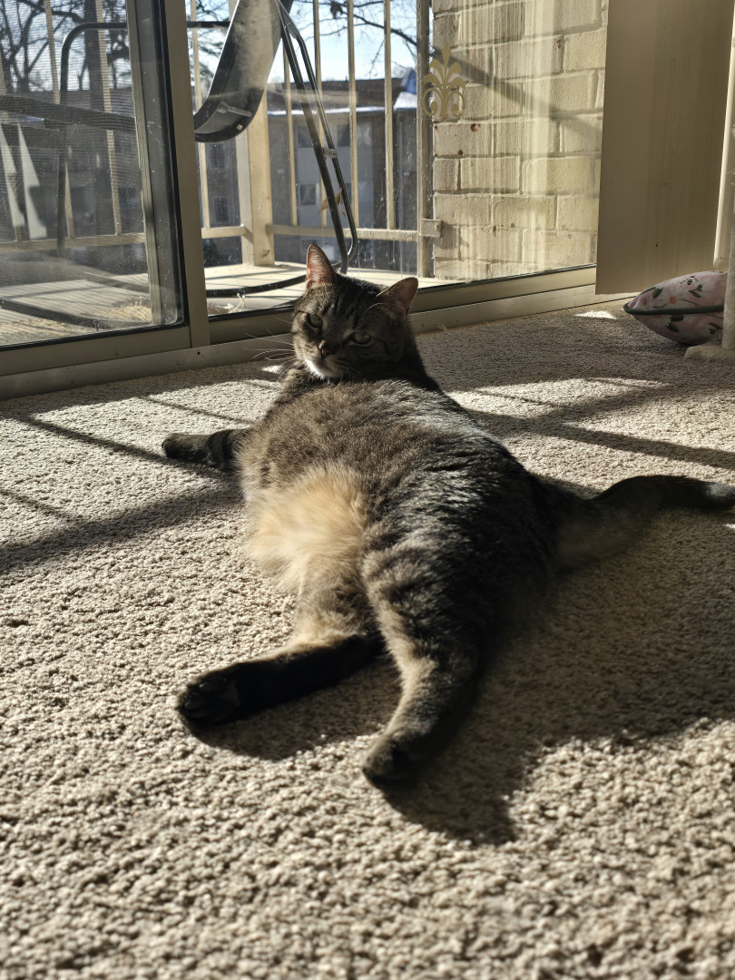 Shes a sweet cat but likes to think she's my mom Shes always there with me Sometimes give me a stink when if she thinks im doing too much