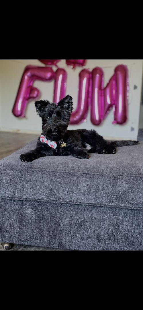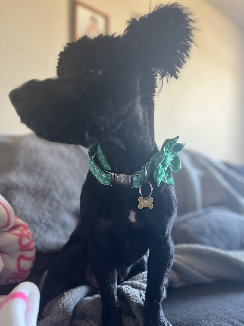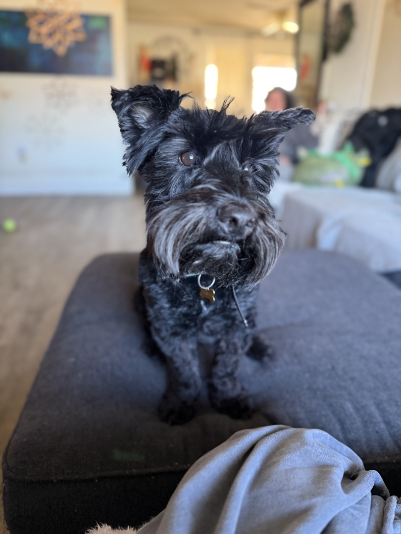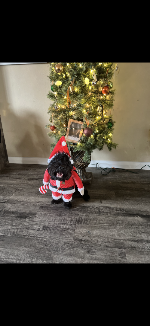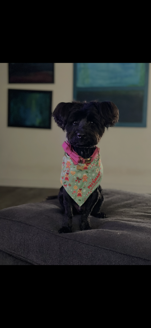 Four-legged ball of fluff, love, and chaos! Every doorbell is an invitation to wiggle, jump, and share his affection…sometimes so enthusiastically that his greetings come with a tiny splash bonus. Leroy’s love knows no bounds—from 5-year-old Girl Scouts to his 73-year-old grandma, he adores everyone! He looks cuter with every haircut and outfit, whether he’s a spider on Halloween or rocking a festive holiday bowtie. You might not recognize his disguises at first, but Leroy always recognizes you—
