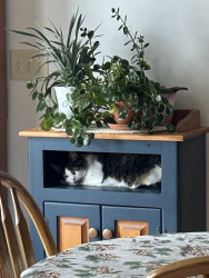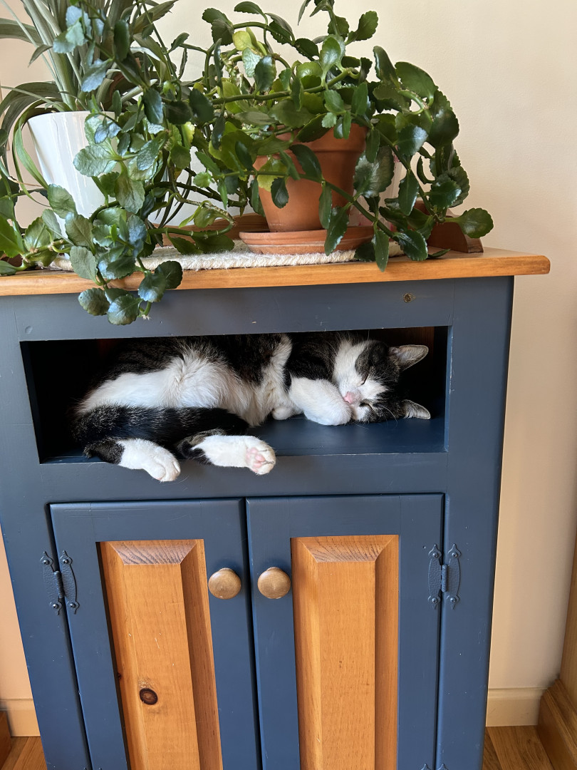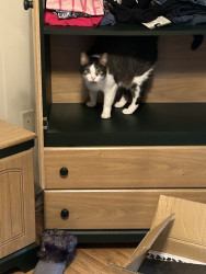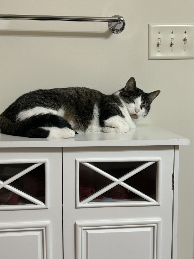 Lexi squeezes into the smallest areas and jumps on the tallest cabinets.