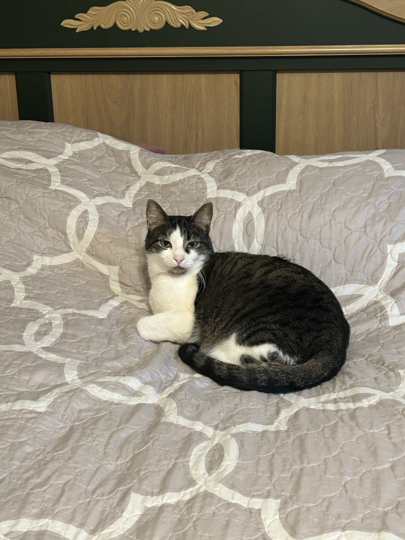 She was a very small kitten who was rescued by the human society. Loved and chose her immediately.