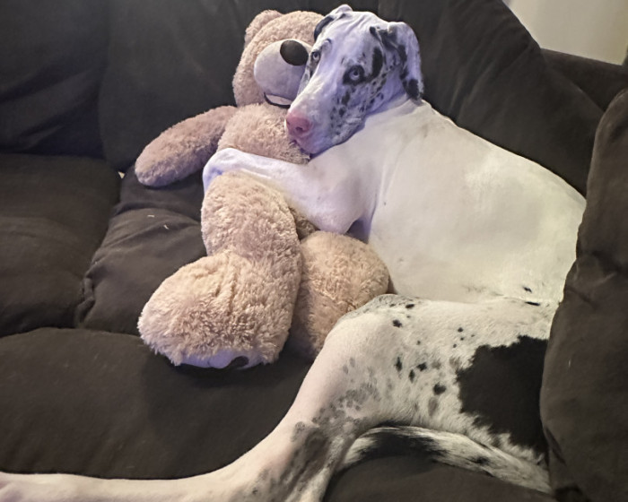 Libby is a fun energetic Great Dane who loves people and other dogs. She’s the most friendliest pup we have ever met. We love and adore her.