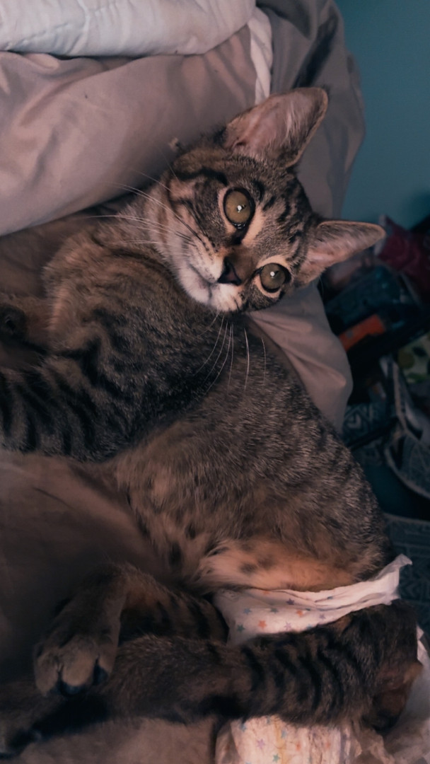 he said a very hard life, but we’ve not let that change a thing he’s an amazing loving cat and an America gets to see who he really is. They will love him just as much as I do because he is truly a star!!!